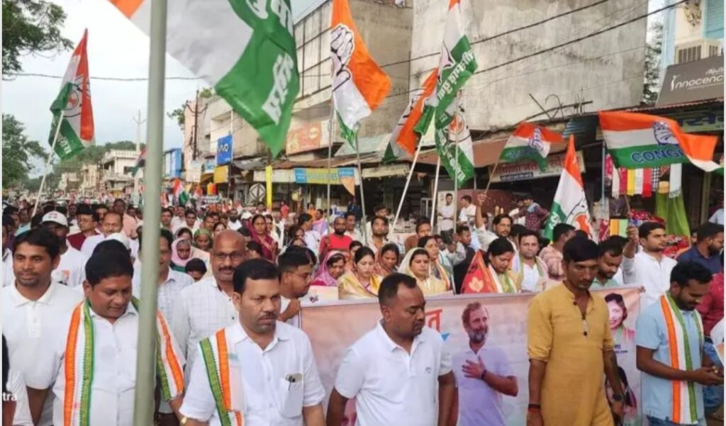 इसी कड़ी में आज जिला सारंगढ़ बिलाईगढ़ के मुख्यालय सारंगढ़ में जिला कांग्रेस कमेटी के अगुवाई में झांसी रानी बाई परिसर से भारत जोड़ो यात्रा निकाली गई जो बस स्टैंड भारत माता चौक होते हुए आजाद चौक जय स्तंभ चौक मिलन चौक पोस्ट ऑफिस चौक अग्रसेन चौक शहर के विभिन्न गलियों से होते हुए रानी लक्ष्मीबाई कंपलेक्स में पहुंची। जहां सभा आयोजित हुई। सभा को वक्ताओं ने भी ते पानी में संबोधित किया और कार्यकर्ता बरसते पानी में कुर्सियों पर बैठे रहे। जिला अध्यक्ष *अरुण मालाकार* ने कहा कि यह पदयात्रा एकता के संदेश देने के साथ भाईचारा और हर वर्ग हर समुदाय हर्जन को आपस में जोड़े रखने के उद्देश्य से निकल गई है आज बरसते पानी में भी आप कार्यकर्ताओं का जोश बिलाईगढ़ सरसीवा, भटगांव, बरमकेला, सरिया, सारंगढ़ कोसीर हर ब्लॉक से कार्यकर्ताओं की बड़ी संख्या का शामिल होना कार्यक्रम की सफलता को बयां करता है। प्रखर वक्ता *सूरज तिवारी* प्रदेश कांग्रेस प्रतिनिधि ने पदयात्रा के उद्देश्यों पर विचार रखते हुए कहा कि कांग्रेस हमेशा जोड़ने का काम करती आई है हमें चुनना है कि हमें गोडसे के डगर में जाना है या सद्भावना और एकता का संदेश देने वाले गांधी के रास्ते में आगे बढ़ाना है। राहुल गांधी जी ने पदयात्रा से आम लोगों के दिलों को जीता है। सारंगढ़ की लोकप्रिय विधायक श्रीमती *उत्तरी गणपत जांगड़े* जी ने सारंगढ़ की जनता उपस्थित कांग्रेस नेताओं को कृष्ण जन्माष्टमी की शुभकामनाएं देते हुए कहा राहुल गांधी जी ने कश्मीर से कन्याकुमारी तक पदयात्रा निकालकर आम लोगों में एकता और भाईचारे का संदेश दिया है। आम लोग उनके कारवां के साथ जुड़ते चले गए यह पदयात्रा लोगों को जोड़ने और नफरत को मिटाने का एक बड़ा उदाहरण बना। ईतने बारिश में आप सभी कांग्रेस के कार्यकर्ता एक मंच के नीचे पदयात्रा में शामिल हुए आपकी उत्साह कार्यक्रम की सफलता और कांग्रेस की मजबूती को बयां करता है। इस अवसर पर जिला कांग्रेस कमेटी अध्यक्ष अरुण मालाकार, श्रीमती उत्तरी गनपत जांगड़े विधायक, पुरुषोत्तम साहू गौ सेवा आयोग सदस्य शरद यादव कृषक कल्याण परिषद सदस्य, श्रीमती मंजू मालाकार जनपद अध्यक्ष, श्रीमती सोनी अजय बंजारे नगर पालिका अध्यक्ष, वरिष्ठ कांग्रेसी संजय दुबे शास महाबि अध्यक्ष जन भागीदारी, प्रदेश कांग्रेस प्रतिनिधि सूरज तिवारी, घनश्याम मनहर, गनपत जांगड़े, श्रीमती मंजू लता आनंद सेवादल संयोजक प्रदेश महिला संगठक, कांग्रेस खेल प्रकोष्ठ जिलाध्यक्ष गोल्डी नायक पूर्व जिला प्रवक्ता एवं महामंत्री, दिलीप कुमार अनंत जिला अध्यक्ष अनुसूचित जाति प्रकोष्ठ, दयाराम साहू जिला अध्यक्ष किसान कांग्रेस, इंदु पड़वार सेवादल जिला अध्यक्ष, ललित साहू युवा कांग्रेस जिलाध्यक्ष, जगद