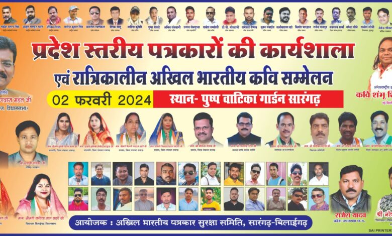 सारंगगढ़: (सुवर्ण कुमार भोई)अखिल भारतीय पत्रकार सुरक्षा समिति का सारंगढ़ में प्रदेश स्तरीय महासम्मेलन एवं कवि सम्मेलन का आयोजन 2फरवरी को पुष्प वाटिका में सम्पन्न हुआ ।