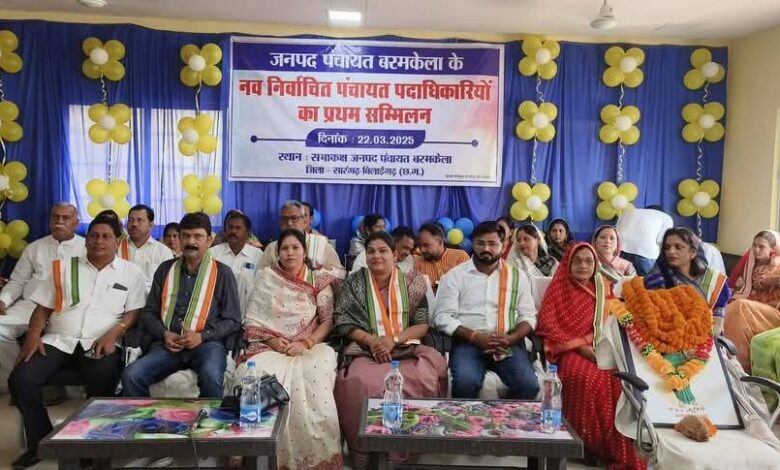 बरमकेला/ जनपद पंचायत बरमकेला के नवनिर्वाचित अध्यक्ष, उपाध्यक्ष एवं सदस्यों के प्रथम सम्मिलन एवं शपथ ग्रहण समारोह का आयोजन जनपद पंचायत सभाकक्ष में संपन्न हुआ। इस कार्यक्रम के मुख्य अतिथि सारंगढ़ विधायक श्रीमती उत्तरी गनपत जांगड़े, विशिष्ट अतिथि पूर्व विधायक प्रकाश नायक, अरुण मालाकार, नगर पंचायत अध्यक्ष श्रीमती सत्यभामा मनोहर नायक, श्रीमती सुषमा नायक, एवं अध्यक्ष उपाध्यक्ष सहित सभी जनपद सदस्य व गणमान्य जनमानस उपस्थित थे।