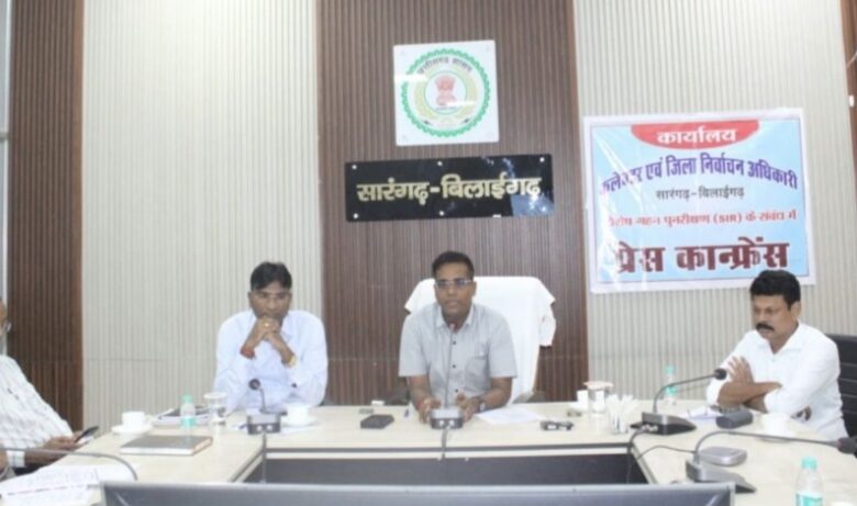 सुवर्ण कुमार भोई/सारंगढ़ बिलाईगढ़ / कलेक्टर एवं जिला निर्वाचन अधिकारी डॉ संजय कन्नौजे ने कलेक्ट्रेट सभाकक्ष में प्रेस कॉन्फ्रेंस में प्रेस प्रतिनिधियों को विशेष गहन पुनरीक्षण (एसआईआर) के संबंध में विस्तृत जानकारी दिए। विशेष गहन पुनरीक्षण के दौरान बूथ लेवल अधिकारी (बीएलओ) का दायित्व से अवगत कराते हुए