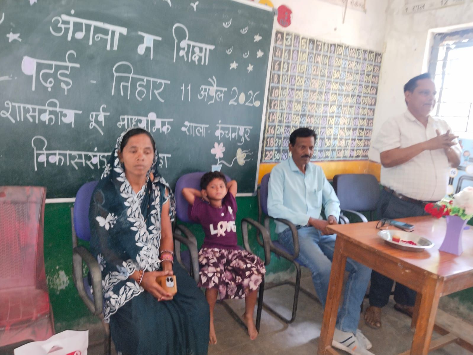 रायगढ़(घरघोड़ा)शासन के आदेशानुसार एवं जिला शिक्षा विभाग के निर्देशानुसार प्राथमिक शिक्षा में नवप्रवेशी बच्चों के सर्वांगीण विकास हेतु माता उन्मुखीकरण और अंगना म शिक्षा कार्यक्रम के अंतर्गत 11अप्रैल 2026 को पढ़ई तिहार शासकीय पूर्व माध्यमिक विद्यालय कंचनपुर में बहुत धूमधाम से मनाया गया।